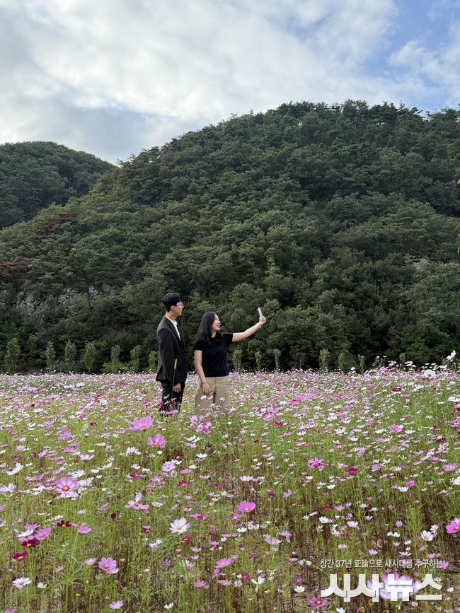 [시사뉴스 장시목 기자]청도군(군수 김하수) 금천면 꽃밭에는 선선한 가을바람이 불어오는 요즘, 코스모스가 활짝 피어나며 한 폭의 그림 같은 풍경을 펼치고 있다.