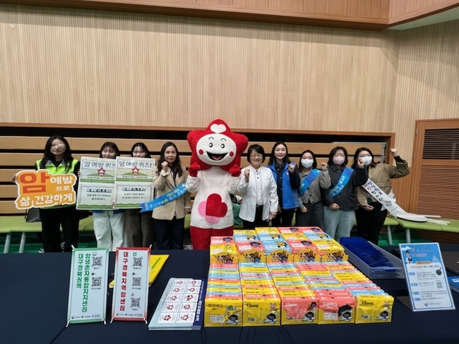 홍보부스는 국가암검진과 암 예방의 중요성을 알리고, 주민들의 건강 인식을 높이기 위해 마련된 것으로, 대구경북지역암센터와 함께 참여한 암예방 서포터즈 6명이 행사장 입구와 복도 등에서 국가암검진 제도와 10대 암예방수칙을 안내하며 적극적인 홍보 활동을 펼쳤다.