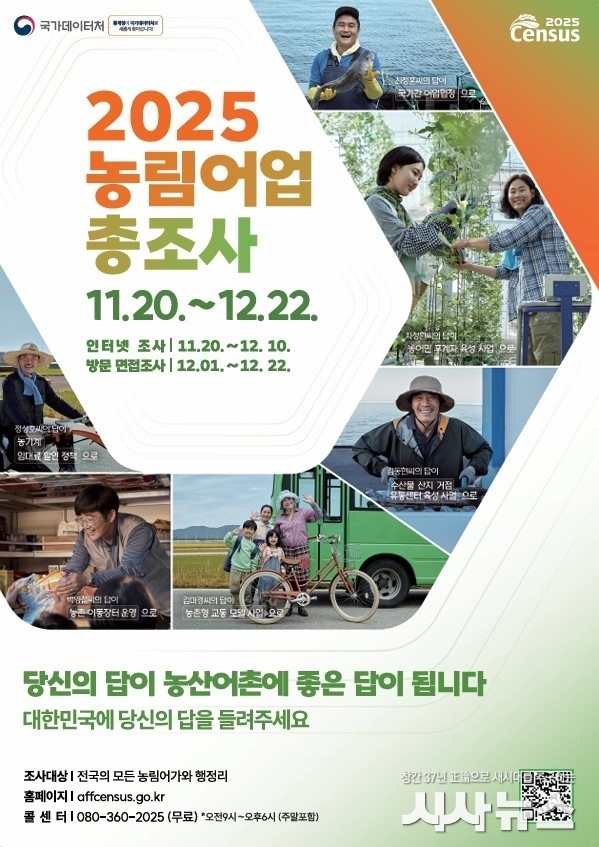 [시사뉴스 하정수 기자] 대구광역시는 11월 20일부터 12월 22일까지 국가데이터처(옛 통계청)가 주관하고 각 지자체가 실시하는 ‘2025 농림어업총조사’를 본격 추진한다.