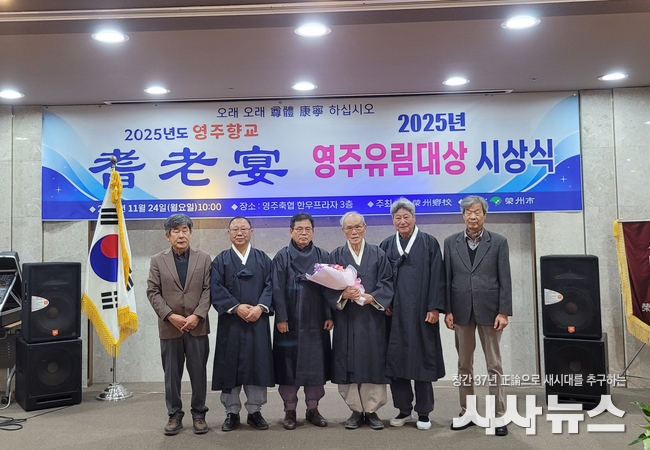 [시사뉴스 장시목 기자]영주시는 지난 24일 영주축협한우프라자 3층 대강당에서 열린 ‘2025년 영주향교 기로연’와 함께 ‘2025년 제1회 영주 유림대상’ 시상식을 개최했다.