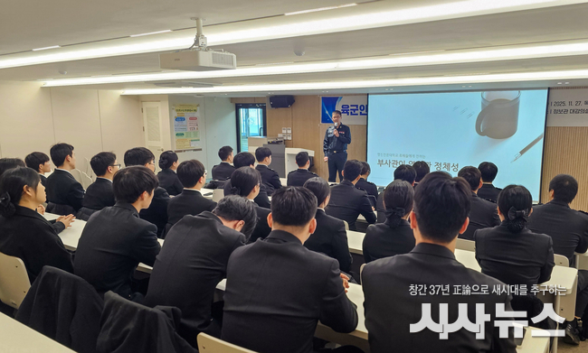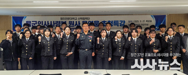 [시사뉴스 장시목 기자]영진전문대학교(총장 최재영) 국방군사계열은 동문 윤영웅 원사(육군인사사령부)를 초청해 재학생을 대상으로 ‘부사관의 역할과 정체성’을 주제로 특강을 개최했다.