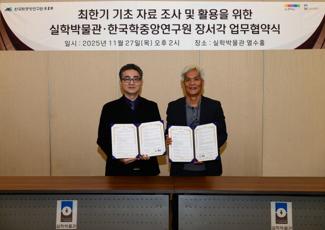 [시사뉴스 홍경의 기자] 한국학중앙연구원 장서각은 경기문화재단 실학박물관과 지난 27일 오후 2시 실학박물관 열수홀에서 학술교류 업무 협약(MOU)을 체결했다고 28일 밝혔다.