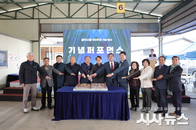 [시사뉴스 장시목 기자]청도군(군수 김하수)은 지난 27일 풍각시장에서 개장 100주년을 맞아 내빈과 주민 등 300여 명이 참석한 가운데 『풍각시장 100주년 기념행사』를 개최하였다.