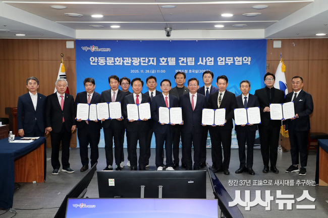 [시사뉴스 장시목 기자]안동시는 11월 28일(금) 경북도청에서 안동문화관광단지 내에 세계적 수준의 호텔을 건립하기 위한 투자 업무협약(MOU)을 체결했다. 이번 협약은 안동의 숙박 인프라 확충과 체류형 관광도시 전환을 위한 핵심 사업으로, 국내외 주요 호텔기업과 민간투자사가 참여해 그 의미를 더했다.