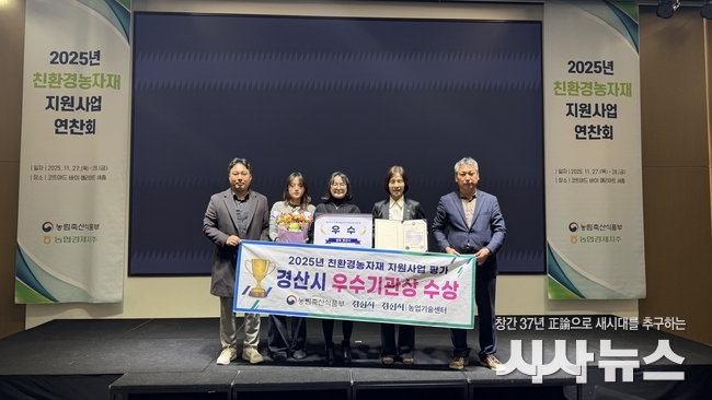 [시사뉴스 장시목 기자]경산시는 27일 세종시 코트야드 메리어트에서 열린 농림축산식품부 주관의 2025년 친환경농자재 지원사업 연찬회에서 「친환경농자재 지원사업 평가」 우수 기관상을 수상했다고 밝혔다.