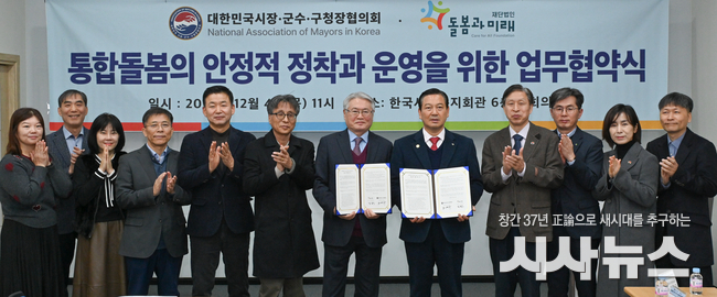 [시사뉴스 장시목 기자]대한민국시장군수구청장협의회(대표회장 조재구, 대구 남구청장)와 재단법인 돌봄과미래(이사장 김용익)는 오는 2025년 12월 4일, 통합돌봄 제도의 안정적 정착과 지역 격차 해소를 위한 업무협약(MOU)을 체결하였다.