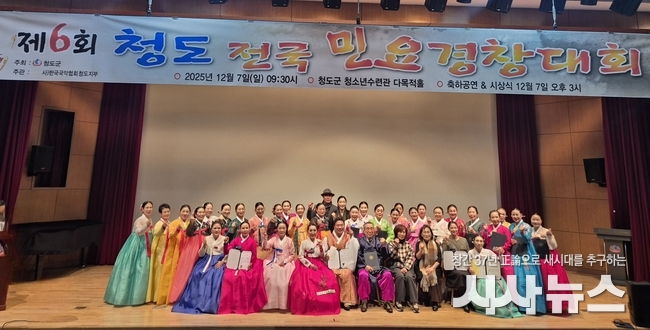[시사뉴스 장시목 기자]청도군(군수 김하수)은 지난 12월 7일 청소년수련관 다목적홀에서 열린 ‘제6회 청도 전국민요경창대회’를 성황리에 마무리했다고 밝혔다.