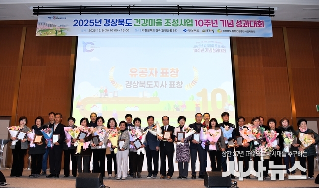 [시사뉴스 하정수 기자] 경상북도는 9일 경주 라한셀렉트호텔 컨벤션 홀에서 32개 건강마을 주민과 시군 보건소 관계자와 경상북도 통합건강증진사업지원단 교수 등 600여 명이 참석한 가운데 ‘2025년 건강마을 조성사업 10주년 기념 성과대회’를 개최했다.