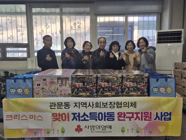 [시사뉴스 이성동 기자] 대구 북구 관문동지역사회보장협의체(공동위원장 김귀남, 조혜정)는 12월 9일(화) 성탄절을 앞두고 저소득층 아동 20명에게 최신 인기 장난감을 나누어 주었다.