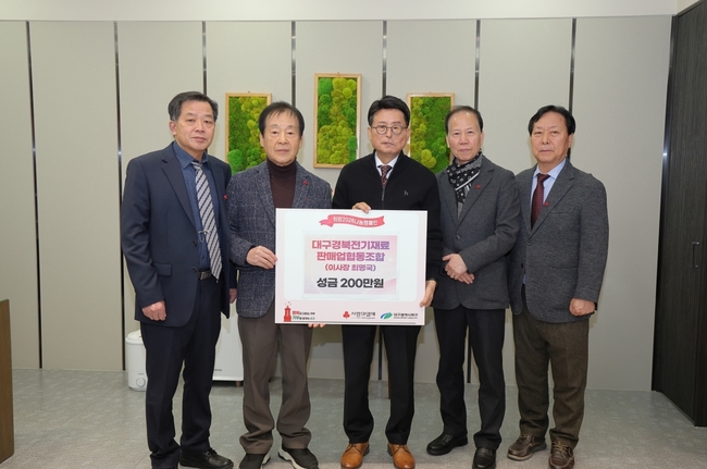 [시사뉴스 이성동 기자] 대구경북전기재료판매업협동조합(이사장 최명국)에서는 12월 15일(월) 북구 저소득층 지원을 위한 성금 200만원을 대구 북구청(청장 배광식)에 기탁했다.