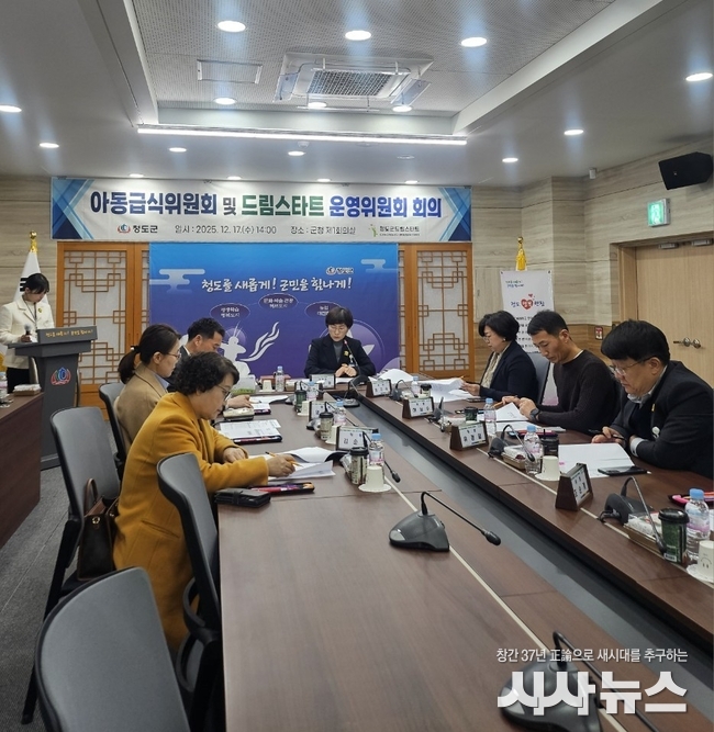 [시사뉴스 장시목 기자]청도군(군수 김하수)은 지난 17일, 청도군청 제1회의실에서 아동급식위원 및 드림스타트운영위원 10명이 참석한 가운데 2025년 하반기 아동급식위원회 및 드림스타트 운영위원회(위원장 이나경 행정안전복지국장)를 개최했다.