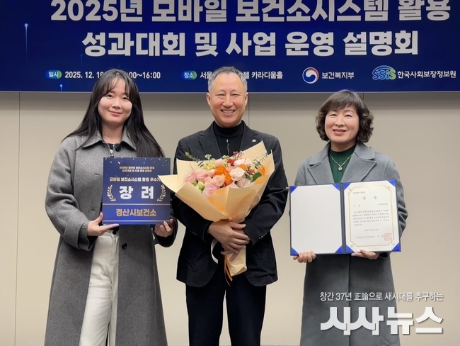 [시사뉴스 장시목 기자]경산시(시장 조현일)는 18일 서울 중구 PJ호텔에서 열린 「2025년 AI-IoT기반 어르신 건강관리 사업 모바일 보건소 시스템 활용 우수기관 시상식」에서 장려상을 수상하며, 지난해 최우수상에 이어 2년 연속 수상의 성과를 거뒀다.