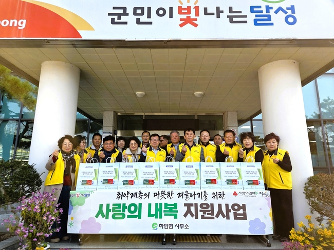 [시사뉴스 이성동 기자] 하빈면 지역사회보장협의체(민간위원장 이홍국)는 지난 17일 지역 내 저소득 및 취약계층 42가구에 겨울 내복을 전달했다고 밝혔다.