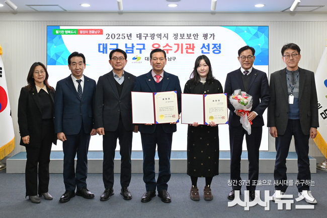 [시사뉴스 장시목 기자]대구 남구(구청장 조재구)는 대구시로부터 정보보안 역량을 인정받아 ‘2025년도 정보보안 평가’에서 우수기관으로 선정되어 대구광역시장 표창을 수상했다.