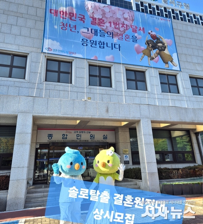 [시사뉴스 장시목 기자]대구 달서구(구청장 이태훈)는 결혼을 희망하는 청춘 남녀에게 자연스러운 만남의 기회를 제공하고, 결혼에 대한 긍정적인 인식을 확산하기 위해‘솔로탈출 결혼원정대’ 회원을 상시 모집한다.