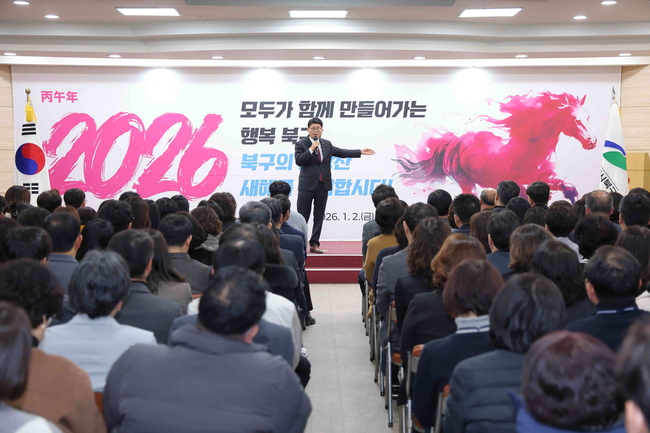 배광식 북구청장은 “병오년은 밝은 에너지로 힘차게 나아가는 해”라며 “2026년에는 말이 아닌 실천으로, 현장에서 주민이 체감하는 변화를 만들어가겠다. 북구청은 올해도 안전과 행복을 최우선 가치로 삼아, 재난 대응 역량 강화, 현장 중심 행정 추진, 주민과의 소통 확대를 통해 적토마처럼 밝게! 힘차게! 주민 곁으로 나아가는 북구가 되겠다”라고 말했다.