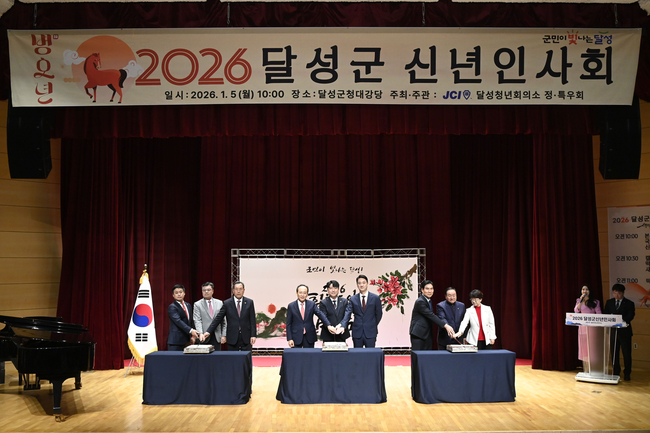 [시사뉴스 이성동 기자] 대구 달성청년회의소(회장 안종민)는 5일 달성군청 대강당에서 2026 신년인사회를 갖고 병오년 새해의 힘찬 시작을 알렸다.