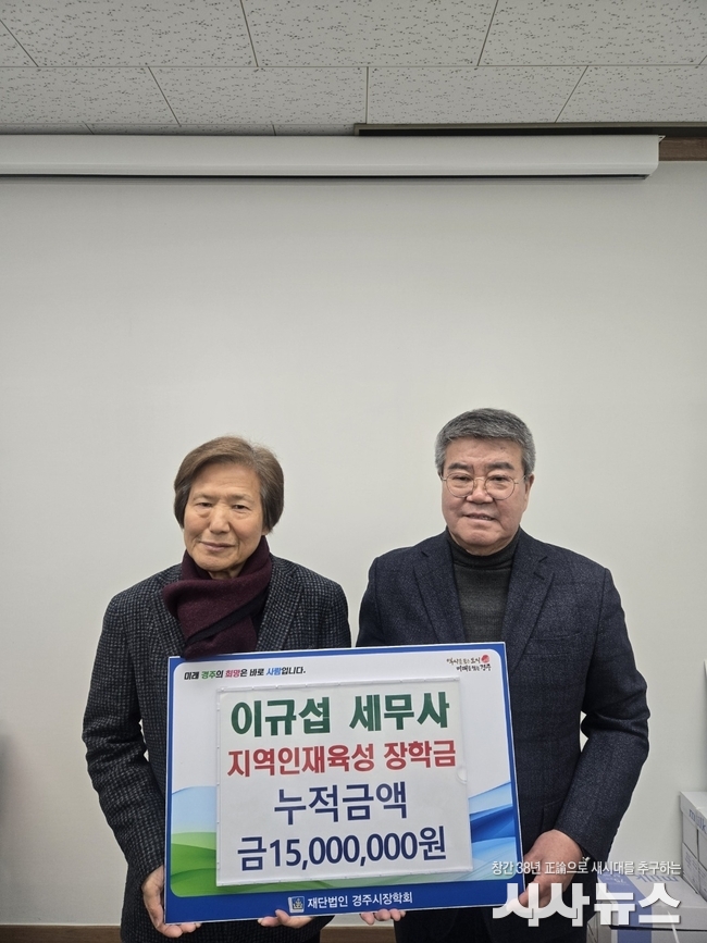 이에 (재)경주시장학회 이사장(경주시장 주낙영)은 자라나는 학생들과 지역의 어려운 이웃을 위해 선행을 베풀어준 이규섭 세무사에게 감사의 뜻을 전하며, “기탁한 장학금은 가정 형편이 어려운 인재들을 위해 소중하게 잘 사용하겠다.”고 말했다.