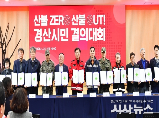 [시사뉴스 장시목 기자]경산시는 21일 경산시청 대회의실에서 『산불 ZERO·산불 OUT 결의대회』를 개최하고, 산불 예방과 신속한 현장 대응을 위한 공동 실천 의지를 다졌다.