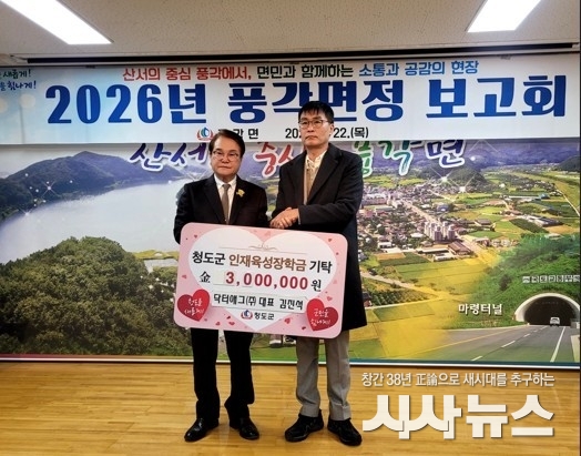 [시사뉴스 장시목 기자]청도군(군수 김하수) 풍각면은 금일 22일 개최된 ‘2026년 풍각면정 보고회’가 단순한 성과 발표를 넘어, 지역의 기업과 단체가 합심하여 나눔을 실천하는 뜻깊은 기탁으로 현장의 열기를 더했다고 밝혔다.