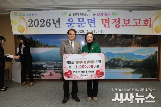 이날 행사에서 운문면 새마을부녀회(회장 이정옥)는 인재육성장학금 100만원을 기탁하며 미래인재 양성을 위한 나눔을 실천하였고,
