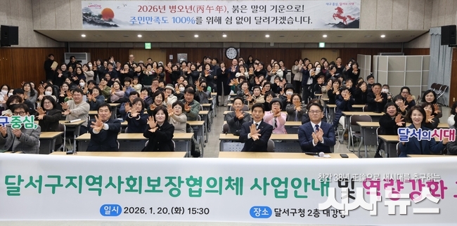 [시사뉴스 장시목 기자] 대구 달서구(구청장 이태훈)는 20일 달서구청에서 달서구지역사회보장협의체 위원 200여 명을 대상으로 「2026년 달서구지역사회보장협의체 사업안내 및 역량강화 교육」을 실시했다.