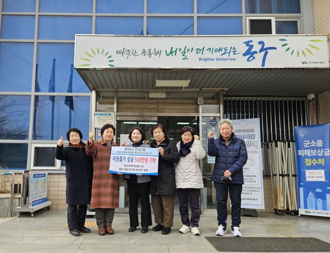 [시사뉴스 이성동 기자] (사)대진국제자원봉사단 종단 대순진리회 동대구 방면 용계회관(선감 이춘옥)은 지난 26일, 이웃돕기 성금 500만원을 안심2동 행정복지센터에 전달했다.