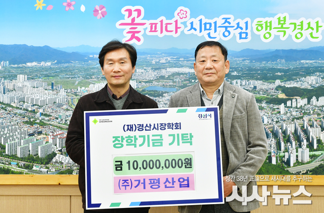 [시사뉴스 장시목 기자](재)경산시장학회(이사장 조현일)는 28일 ㈜거평산업(대표이사 윤형순)이 지역 인재 육성을 위한 장학금 1,000만 원을 기탁했다고 밝혔다.