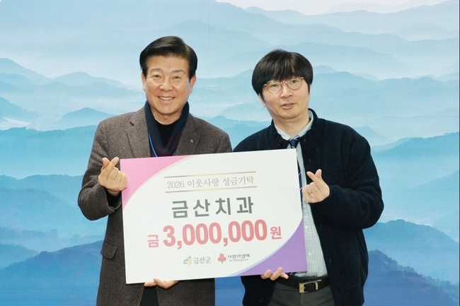 금산치과의원(원장 양재영)은 이웃돕기 성금 300만 원을 기탁했다. 전달된 성금은 관내 어려운 이웃을 위한 복지사업에 소중히 사용될 예정이다.
