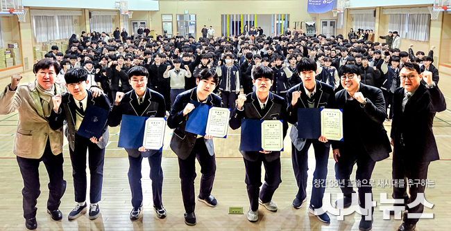 최근영 송암장학회 이사장은 이날 격려사에서 “오늘의 장학금은 성과에 대한 보상이 아니라 여러분의 가능성을 믿고 보내는 신뢰의 표현”이라며, “끝까지 멈추지 않는 태도가 여러분을 더 큰 사람으로 성장시킬 것”이라고 강조했다. 이어 “이 자리는 일부 학생만을 위한 자리가 아니라, 모든 학생의 가능성을 확인하는 시간”이라며 전교생에게 도전과 성장을 당부했다.