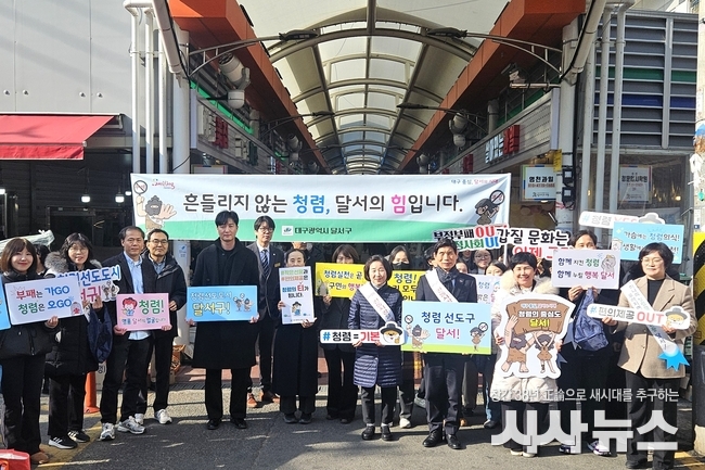 [시사뉴스 장시목 기자]대구 달서구(구청장 이태훈)는 4일 설 명절을 앞두고 전통시장을 찾은 지역주민과 함께 반부패·청렴 의식을 확산하기 위해 ‘설맞이 전통시장 청렴 캠페인’을 실시했다.