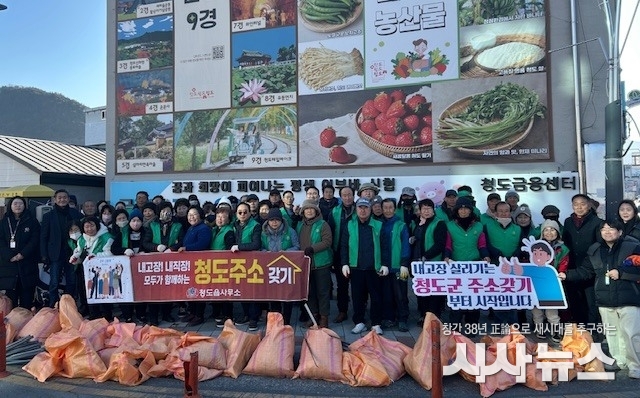 [시사뉴스 장시목 기자]청도군(군수 김하수) 청도읍은 9일 청도시장 장날을 맞아 새마을3단체와 직원 등 100여 명이 참여한 가운데 ‘청도군 주소갖기 운동’ 캠페인을 실시했다.