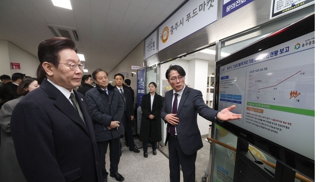 안귀령 청와대 부대변인은 서면 브리핑을 통해 이 대통령 부부가 이날 오후 충북 충주시 무학시장을 방문해 상인들에게 새해 인사를 건네고 현장 민심을 청취했다고 전했다. 무학시장은 지난 1978년 노점상 정착을 위해 개설된 곳이다.