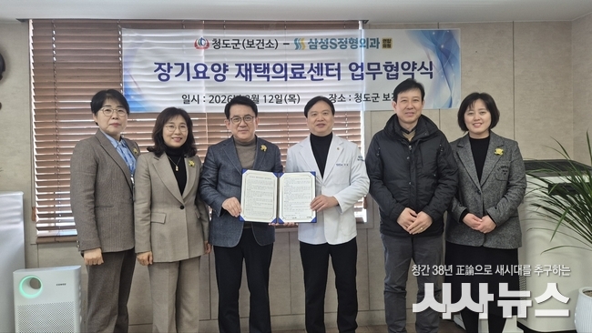 [시사뉴스 장시목 기자]청도군(군수 김하수)은 2월 12일(목) 청도삼성S정형외과연합의원(원장 김기영)을 장기요양 재택의료센터 의료기관으로 지정하고 업무추진을 위한 협약(MOU)을 체결했다. 이번 협약은 3월 27일부터 시행되는