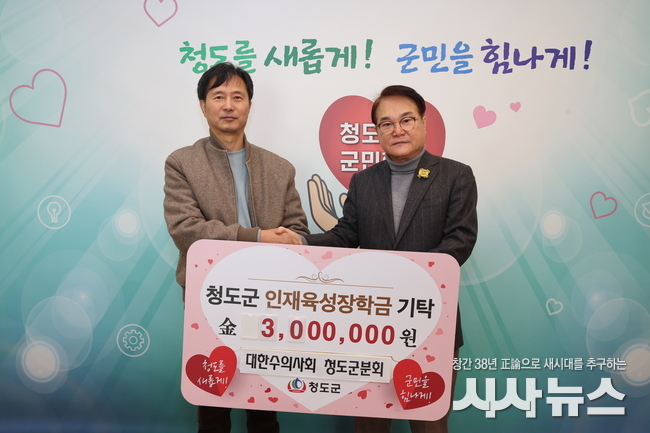 [시사뉴스 장시목 기자]청도군수의사회(회장 김성곤)는 지난 12일 청도군 지역사회 인재육성과 교육발전을 위한 인재육성장학금 3백만원을 기탁했다.