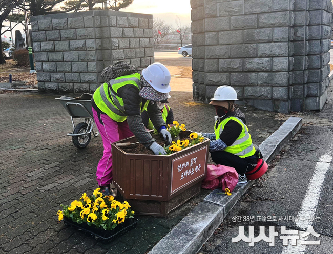 이번 사업은 겨울철 이후 다소 삭막해진 도심 분위기를 개선하고 시민들에게 봄의 정취를 전하기 위해 추진됐다. 차량과 보행자 통행이 많은 주요 도로변 화분과 시민운동장, 읍면동 행정복지센터 등에 노란 팬지를 심어 거리 환경을 화사하게 조성했다.