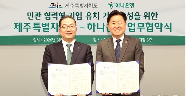 이번 협약은 하나은행의 금융 인프라를 활용해 제주 지역으로 이전을 희망하는 기업의 성공적인 정착을 지원하고 투자 유치를 촉진하기 위해 마련됐다.