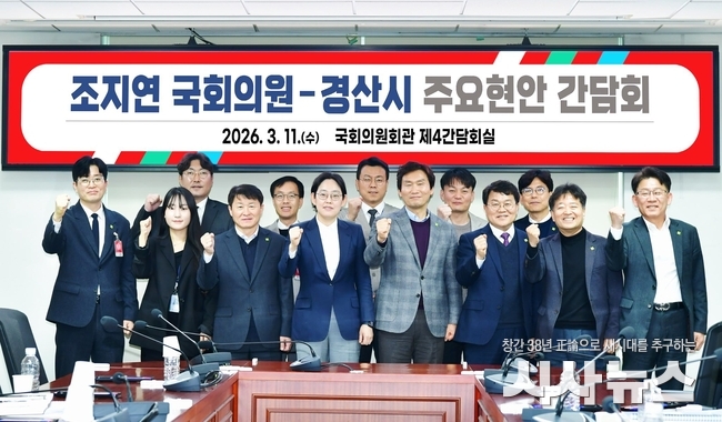 [시사뉴스 장시목 기자]경산시(시장 조현일)는 11일 국회의원회관 제4간담회실에서 조지연 국회의원과 간담회를 개최하고, 2027년 정부예산 확보 방안과 지역 주요 현안사업에 대하여 심도 있게 논의했다.