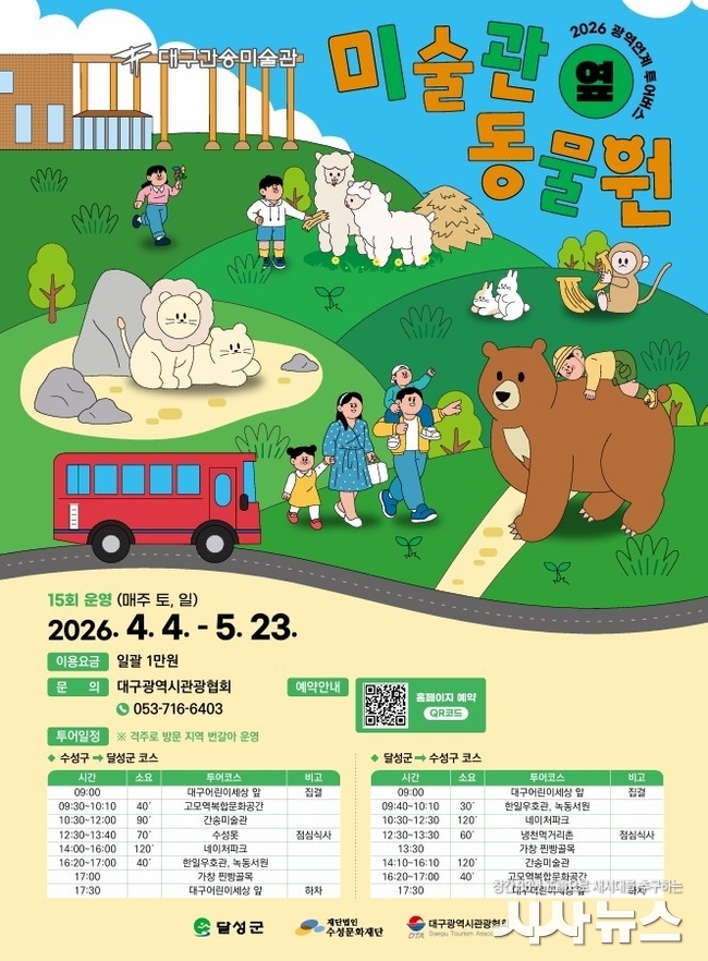 [시사뉴스 이성동 기자] 대구 수성문화재단이 달성군과 협력해 운영 중인 광역 연계 투어 프로그램 ‘미술관 옆 동물원’이 전 회차 매진을 기록하며 높은 관심을 받고 있다.