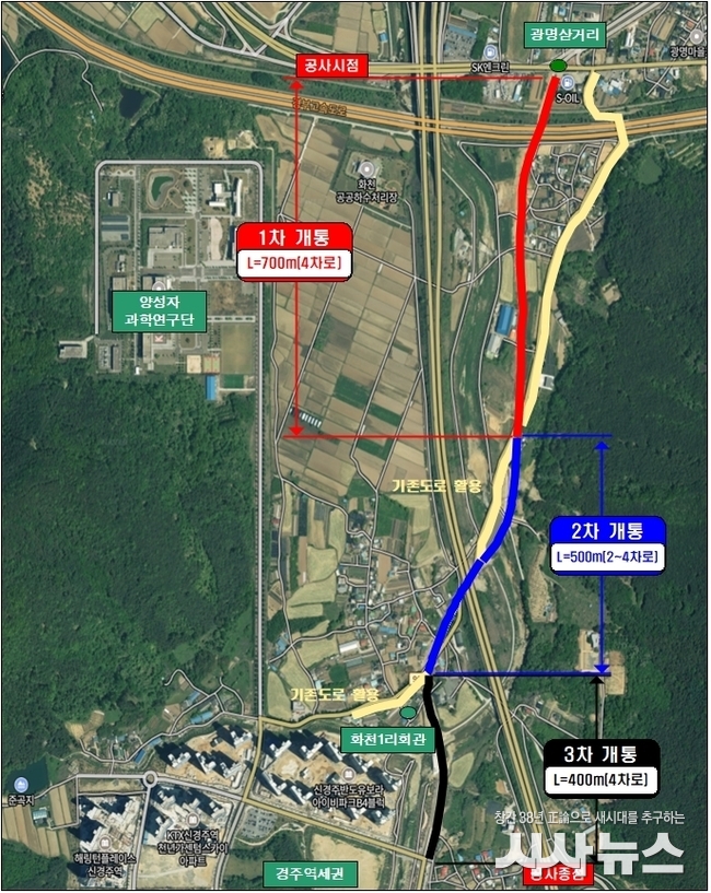 최혁준 경주시장 권한대행은 “광명~화천 도로는 신경주역세권과 도심을 잇는 핵심 기반시설”이라며 “단계별 개통으로 시민 불편을 줄이고 교통환경 개선 효과를 조기에 체감할 수 있도록 하겠다”고 말했다.