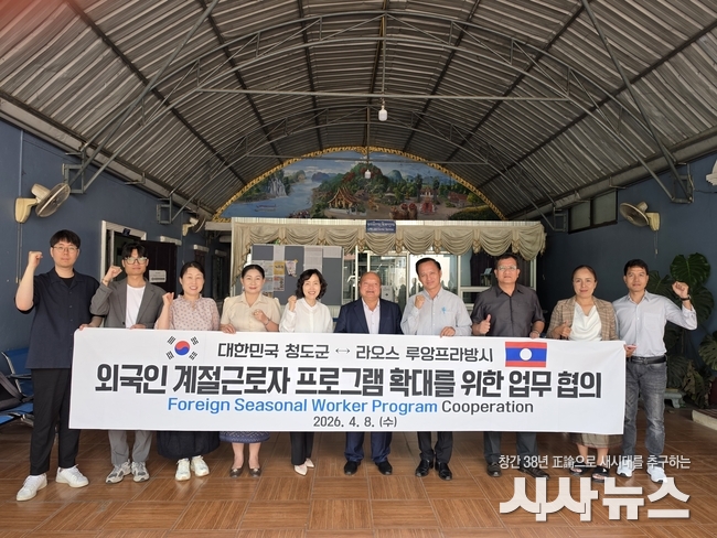 [시사뉴스 장시목 기자]청도군(군수 김하수)은 외국인 계절근로자 도입 지역 확대와 안정적인 인력 수급 체계를 구축하기 위해 라오스 노동사회복지부를 방문하여 변경 업무협약(MOU)을 체결하고, 라오스 현지에서 계절근로자 선발 과정에 직접 참여하여 최종 면접을 실시했다고 7일 밝혔다.