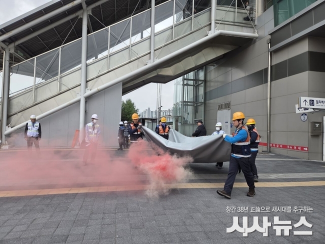 [시사뉴스 장시목 기자]한국철도공사 대구본부 경산역은 효율적인 통합방위작전 수행 및 지원 절차 숙달을 위하여 9일 오전 경산역에서 ‘2026 화랑훈련’을 실시했다.