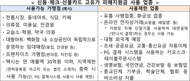 고유가 피해지원금을 지역사랑상품권으로 지급받은 국민은 기존에 구매한 지역사랑상품권과 마찬가지로 주소지 관할 지방자치단체에 소재한 모든 가맹점에서 자유롭게 이용할 수 있다.