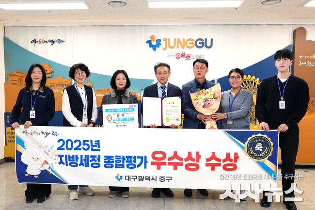 [시사뉴스 이성동 기자] 대구 중구는 대구광역시가 주관한 ‘2026년(2025년 회계연도) 지방세정 종합평가’에서 우수기관으로 선정돼 기관 표창과 함께 상사업비 5천만 원을 확보했다.