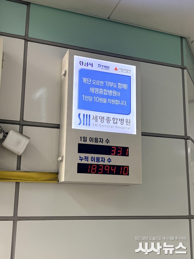 건강나눔계단은 2019년 경산시, 세명종합병원, 경북사회복지공동모금회 협약을 통해 설치된 이후, 계단 이용자 수에 따라 기부금이 적립되는 시민 참여형 나눔 모델로 운영되며 현재까지 연간 최대 1,000만 원 규모의 기부로 지역 내 나눔문화 확산에 기여하고 있다.