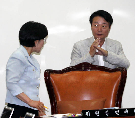 24일 오전 국회 문화체육관광방송통신위원회 전체회의에 KBS 수신료 인상안과 관련해 여야 의원들의 설전 속에 회의가 정상적인 진행하지 못하고 있다.