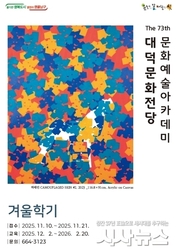 [시사뉴스 장시목 기자]대구 남구 대덕문화전당은 오는 10일부터 21일까지 문화예술아카데미 겨울학기 수강생을 모집한다고 밝혔다. 이번 학기는 12월 초부터 2026년 2월까지 12주 동안 진행되며 음악, 미술, 교양 분야로 28개 강좌가 운영될 예정이다. 이번 겨울학기에는 지역에서 활발하게 활동 중인 피아니스트 최훈락, 플루티스트 김진솔, 첼리스트 강정우와 함께하는 해설이 있는 앞산愛 11시 콘서트 를 준비하였다. 역사학자 심용환을 초청하여 강연과 연주가 함께 하는 앞산살롱콘서트 를 개최한다. 강연을 맡은 심용환은 KBS 아주史적인 여행 , MBC 선을 넘는 녀석들 마스터 X , JTBC 역사이야기 꾼들, 톡파원 25시 등 각종 방송 출연과 강연으로 활발한 활동을 이어가고 있다. 앞산 살롱콘서트는 개화기 시절을 주제로 강연과 함께 음악이 어우러지는 렉처콘서트로 심용환 학자의 깊이 있는 해설과 함께 그 시대의 이야기를 음악과 함께 전달하여 울림이 있는 시간으로 채우고자 한다. 조재구 남구청장은 “이번 겨울학기 문화예술아카데미 프로그램으로 일상에서 배움을 이어가는 소중한 시간이 되길 바란다.”라고 말했다. 관심있는 지역주민은 누구나 참여할 수 있으며, 강좌관련