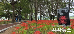 [시사뉴스 장시목 기자]영주시는 지난 5월 영주댐 인근 용마루1공원과 영주소방서앞 맨발걷기 공원에 심은 꽃무릇이 현재 만개해 시민과 방문객을 맞이하고 있다고 25일 밝혔다. 두 공원은 총 면적 약 6천㎡(제곱미터)에 달하며, 12만 본의 꽃무릇이 식재돼 가을을 대표하는 새로운 경관으로 자리매김하고 있다. 산책로를 따라 이어지는 붉은 물결은 장관을 이루며 주말을 중심으로 많은 시민과 관광객이 찾아 지역의 가을 명소로 각광받고 있다. 이번 개화는 10월 초까지 이어질 것으로 예상돼 가을 정취를 즐기려는 시민들과 고향을 찾은 추석 귀성객들에게도 새로운 볼거리로 많이 찾을 것으로 전망된다. 임정옥 공원관리과장은 “올해 첫 시도로 안정적인 활착을 최우선에 두었으며, 봄에 식재한 꽃무릇이 건강하게 꽃을 피워 시민들이 계절의 변화를 생생히 느낄 수 있게 됐다”며 “방문객들이 편안히 관람할 수 있도록 관리와 안내를 지속하겠다”고 말했다. 시는 앞으로도 지속적인 관리와 추가 식재를 통해 꽃무릇을 영주의 대표 가을 경관 자원으로 발전시켜 나갈 계획이다.