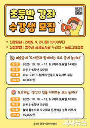 [시사뉴스 장시목 기자]영주하망도서관은 지역 아동의 창의력과 사고력 향상을 위해 오는 29일부터 초등학생 대상 문화강좌 수강생을 모집한다. 이번 강좌는 초등학교 3학년부터 6학년을 대상으로 하며, 10월 18일부터 12월 6일까지 운영된다. 교육은 △미술 공예 ‘도서관과 함께하는 토요 공예 놀이터’ △보드게임 ‘생각의 힘을 키워주는 보드 놀이터’ 등 2개 프로그램으로 구성됐다. ‘미술 공예’는 다양한 공예 체험을 통해 자신의 감정을 자유롭게 표현하는 과정으로, 매주 토요일 오후 2시에 운영되며, ‘보드게임’은 놀이를 통해 협동심과 문제해결 능력을 기르는 강좌로, 매주 토요일 오전 10시에 운영된다. 모든 강좌는 무료이며, 재료비는 본인 부담이다. 수강 신청은 오는 29일(월) 오전 10시부터 영주시 공공도서관 누리집(lib.yeongju.go.kr)에서 선착순 접수할 수 있다. 강좌별 운영 기간 등 자세한 사항은 누리집을 참고하거나 선비인재양성과(☎054-639-4954)로 문의하면 된다. 김호정 선비인재양성과장은 “다양한 체험 중심의 강좌를 통해 어린이들의 창의성과 사고력을 키울 수 있는 기회가 되기를 바란다”며 “앞으로도 다양한 프로그램을 통해 아이들이