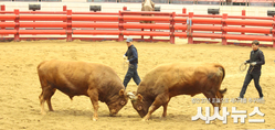 [시사뉴스 장시목 기자]지난 5일부터 9일까지 청도소싸움경기장에서 열린 2025년 청도군 전국 민속 소싸움대회가 성황리에 종료됐다. 전국 유일의 소싸움 전용 돔 경기장에서 펼쳐진 2025년 청도군 전국 민속 소싸움대회는 전국의 싸움소 총 198두가 출전하여 대백두급, 소백두급, 대태백급, 소태백급, 대한강급, 소한강급의 6개 체급으로 나눠 조 추첨으로 결정된 대진표에 따라 토너먼트 방식으로 진행됐다. 5일부터 7일까지 예선전이 진행됐으며, 8일 개막식을 전후로 본격적인 경기가 시작됐다. 그 중 6일에는 751~800㎏ ‘대한강급’ 예선 첫 경기부터 유력한 우승 후보인 풍산(의령)과 챔투(창원)가 붙게 되면서 박진감 넘치는 경기가 진행돼 관객석에서 곳곳에서 박수와 환호성이 터졌다. 체급별 대회 결과 △소태백 진주 박성권의 불검 △대태백 청도 유재욱의 태검 △소한강 의령 하준오의 토르 △대한강 의령 하준오의 풍산 △소백두 청도 최진호의 제일 △대백두 청도의 조진봉의 순창이 가 각각 체급별 우승의 영예를 안았다. 김하수 청도군수는 이번 소싸움 대회 참가자와 관계자를 격려하며 “5일 동안 사고 없이 대회를 잘 마무리하게 되어서 다행”이라며, “청도군에서 즐거운 추억